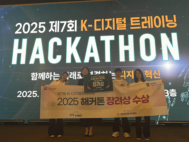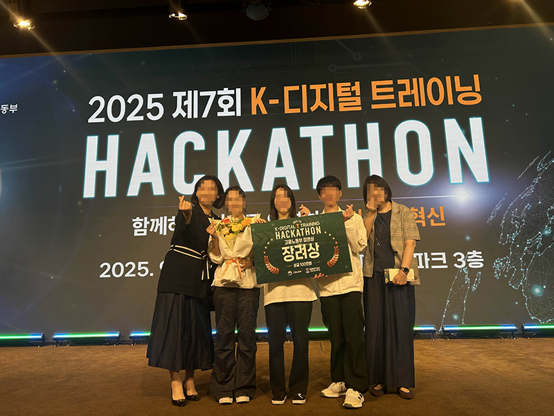 제7회 K-디지털 트레이닝 해커톤 대회 '장려상' 수상! 안녕하세요. 고용노동부와 한국직업능력심사평가원(KSQA)이 주최한제 7회 해커톤 대회에서 '[삼정] ESG 데이터 기반 재무영향 자동화 개발자 과정 2기'훈련생(구ㅇ승, 이ㅇ희, 이ㅇ)들이 장려상을 수상하였습니다.수상을 진심으로 축하드리며,이들의 열정과 도전이 더 많은 훈련생분들에게 긍정적인 영향을 미치길 바랍니다.감사합니다.