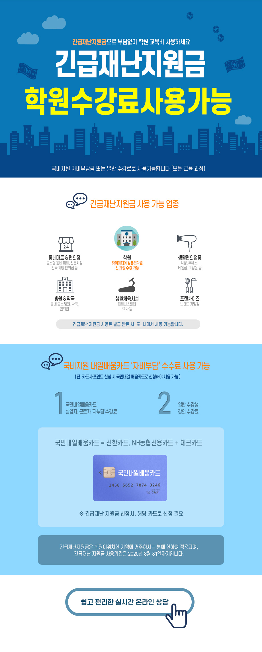 '긴급재난 지원금'을 학원 강의 수강료로 사용 가능합니다
