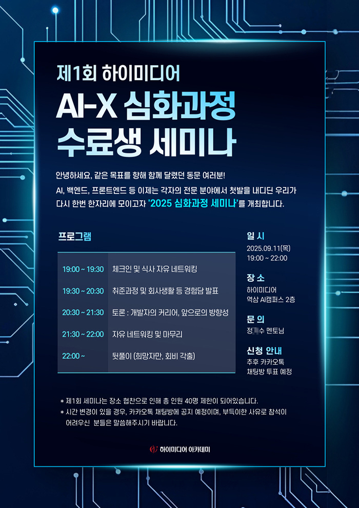 '제1회 AI-X 심화과정 수료생 세미나'가 열렸습니다.