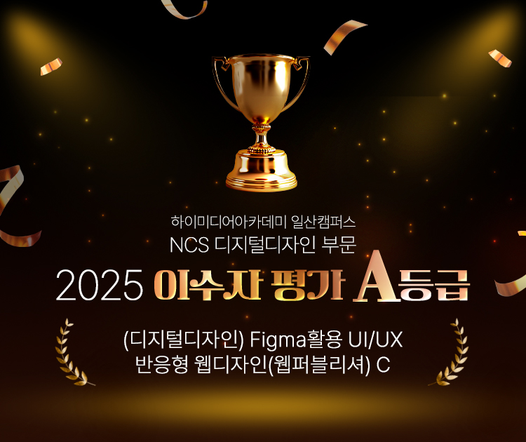 2025 이수자평가 A등급 획득 '(디지털디자인) Figma활용 UI/UX 반응형 웹디자인(웹퍼블리셔) C'