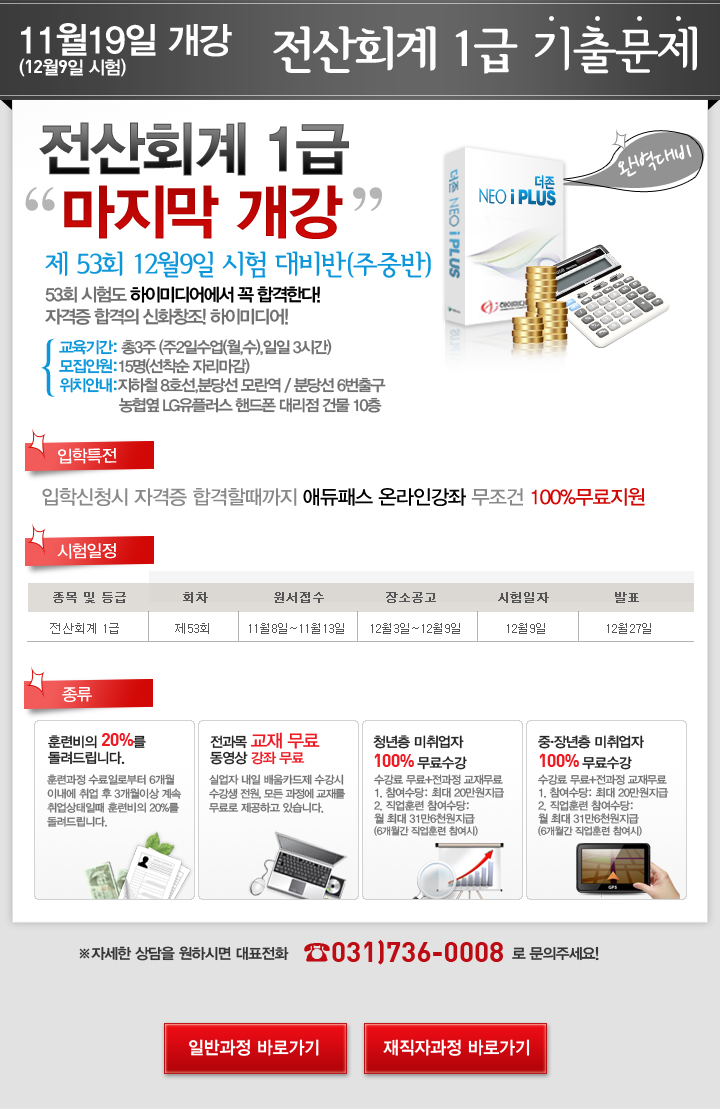 [공지] 전산회계 1급 기출문제 대비반 개강안내
