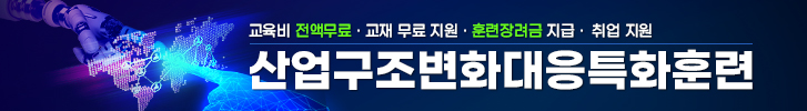 본 과정은 근로자의 직무 경쟁력 강화를 도모할 수 있도록 내일배움카드를 발급받아 직업능력개발 훈련에 참여할 수 있도록 훈련비용을 지원합니다. 정규직/비정규직 상관없이 1인당 300만원 한도에서 85% ~50% 지원을 받으실 수 있습니다.